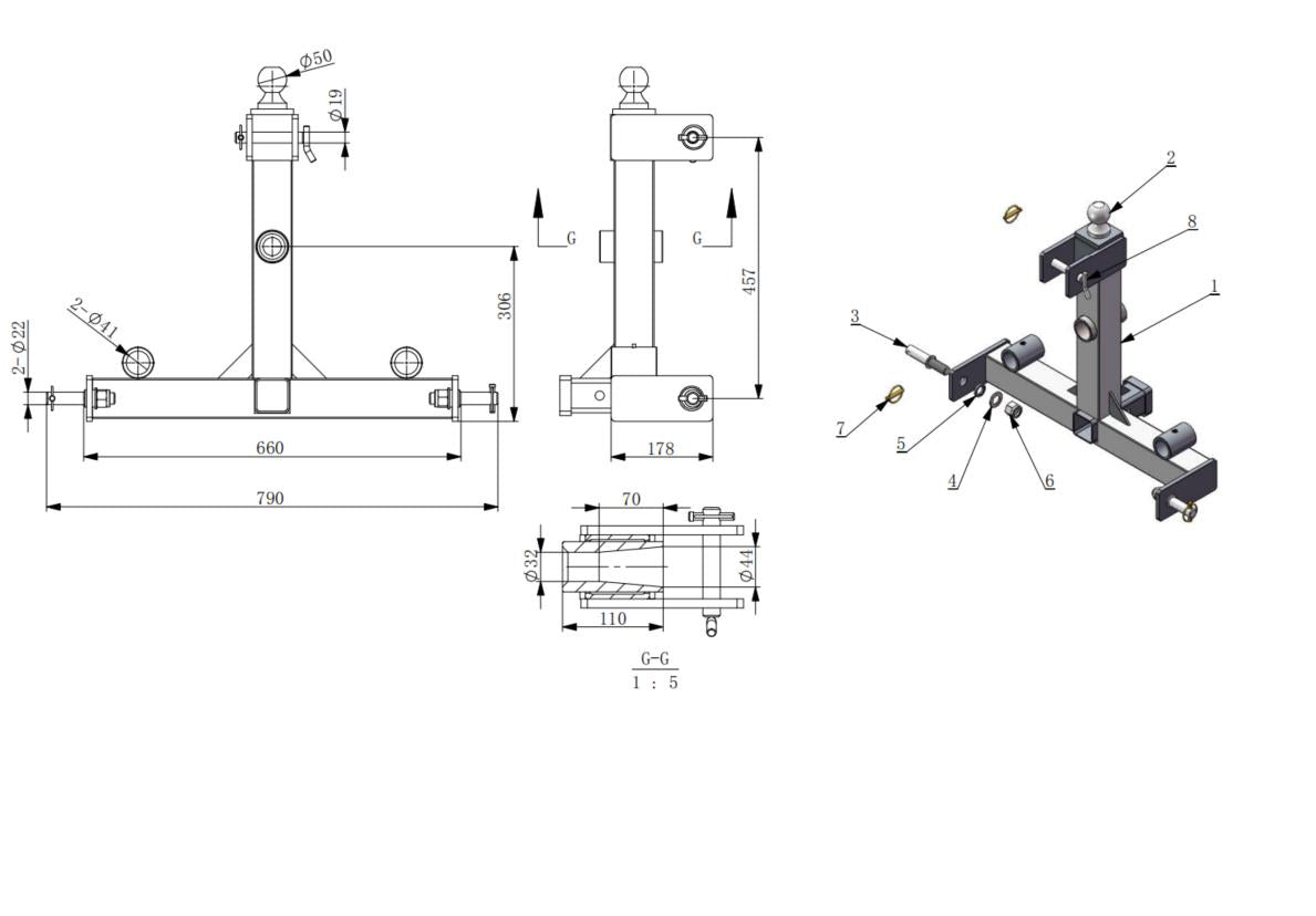 – Fits Category 1, 3 Point tractor hitches